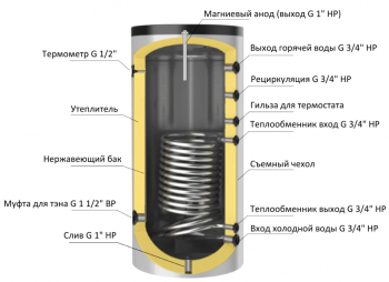 - съемная теплоизоляция из пенополиуретана толщиной 30 мм (диаметр бака без изоляции 460мм)