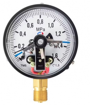 Манометр с повышенной пылевлагозащищенностью РОСМА Тип ТМ, серия 10 для управления внешними электрическими цепями в схемах сигнализации, автоматики и блокировки технологических процессов. Электроконтактная группа снабжена указателями, с помощью которых осуществляется настройка приставки на пороговое значение.