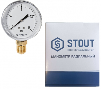 STOUT SIM-1010-801615 Манометр радиальный 0-16 бар, корпус 80мм, 1/2" снизу, кл.2,5