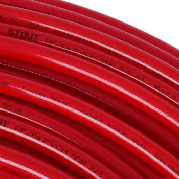 STOUT PE-Xa/EVOH 20х2,0 красная (бухта 100 м) Труба из сшитого полиэтилена с кислородным слоем, для отопления