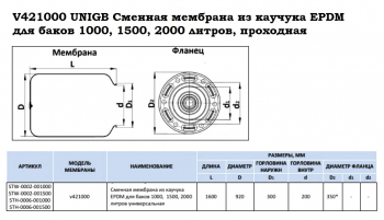 UNIGB V421000 Мембрана проходная для баков 1000, 1500, 2000 литров, горловина 200/300, EPDM