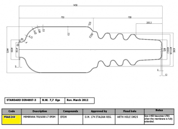 SEFA F0A0244 Мембрана проходная для баков 750л, горловина 150/200 (159мм) EPDM, Италия